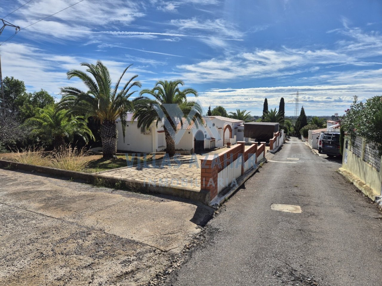 Charmante maison individuelle de plain-pied avec garage, située dans un quartier résidentiel très calme, à environ 3 km du centre d’Alcossebre. Le terrain a une superficie d’environ 979 m² et la maison offre une surface construye d’environ 101 m².