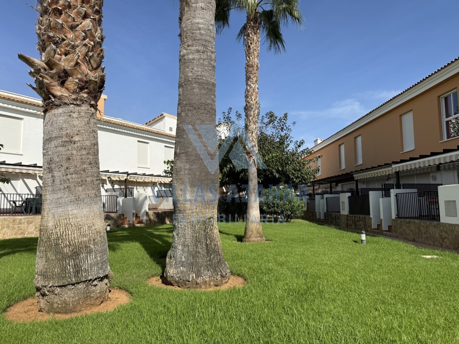 Charmante maison mitoyenne lumineuse, située dans la résidence privée Palm Beach II, dans la zone de la grande piscine. À seulement quelques minutes de la mer et entourée de jardins soigneusement entretenus, cette propriété offre un environnement paisible et agréable tout au long de l’année.
